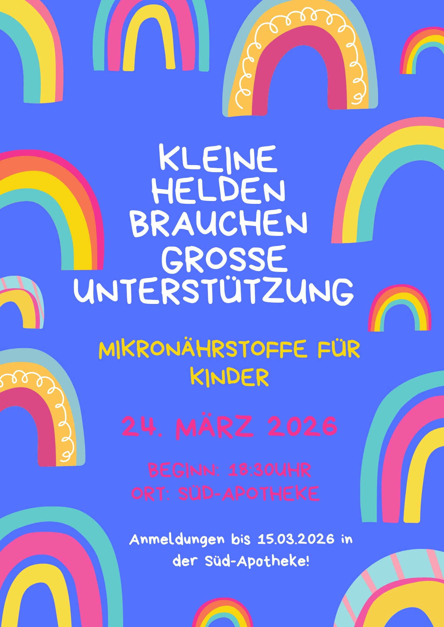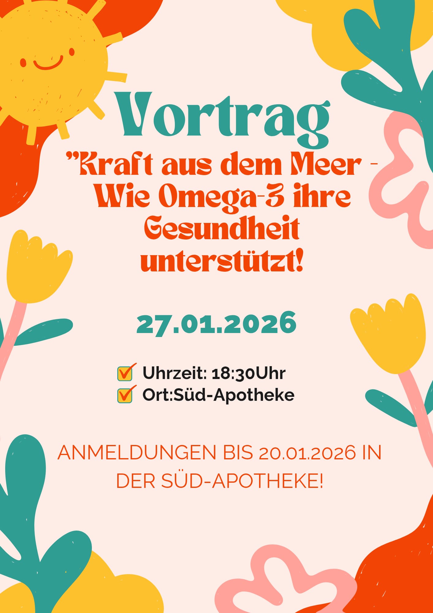 Unsere Vortragsabende sind offen für alle Interessierten – ob Patientinnen, Patienten, Angehörige oder einfach Menschen, die mehr für ihre Gesundheit tun möchten. Wir laden Sie herzlich ein, vorbeizukommen, Neues zu lernen und ins Gespräch zu kommen. Die aktuellen Termine und Themen finden Sie hier auf unserer Homepage oder direkt bei uns in der Süpd-Apotheke.